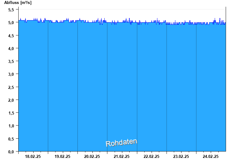 Der Pegel wird durch Baumaßnahmen unterhalb beeinflusst (Rückstau). Entsprechend sind die Abflusswerte nicht korrekt