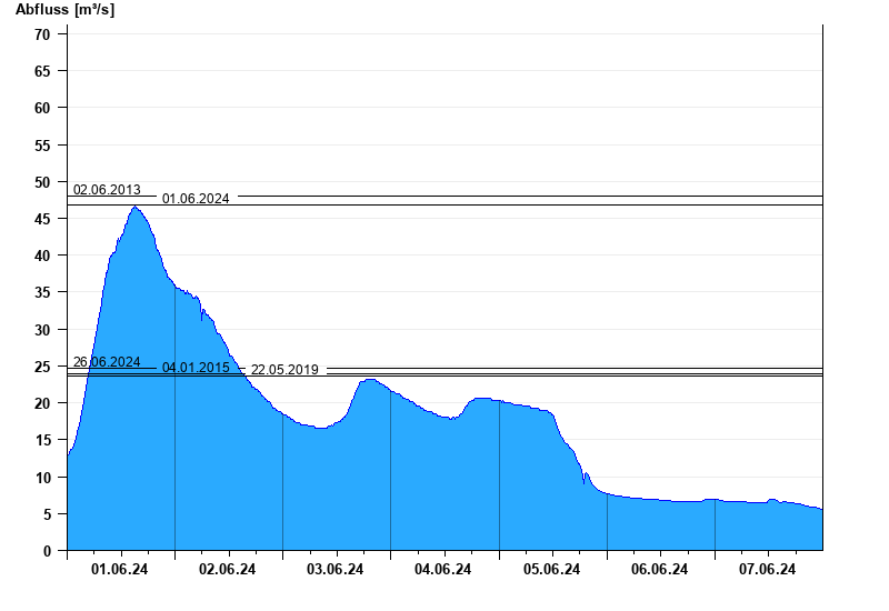 - 01.06.2024 Abfluss: 46,8 m³/s