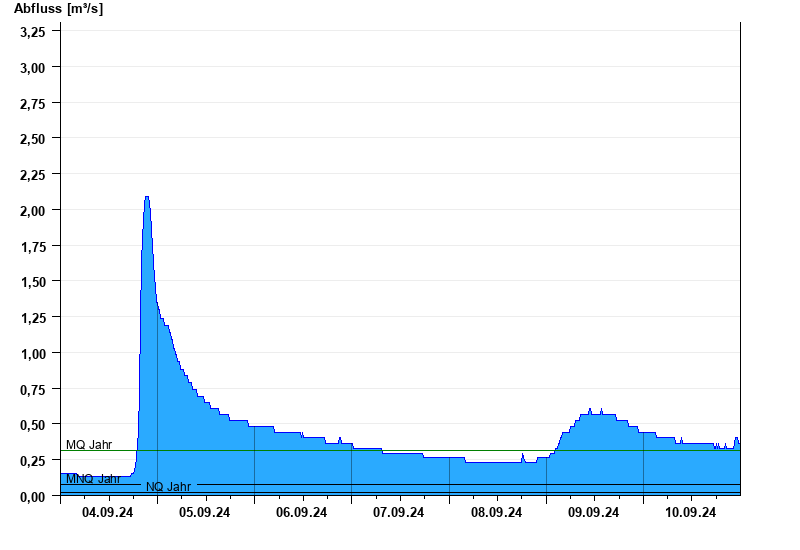 - Mittlerer Niedrigwasserabfluss MNQ 0,08 m³/s