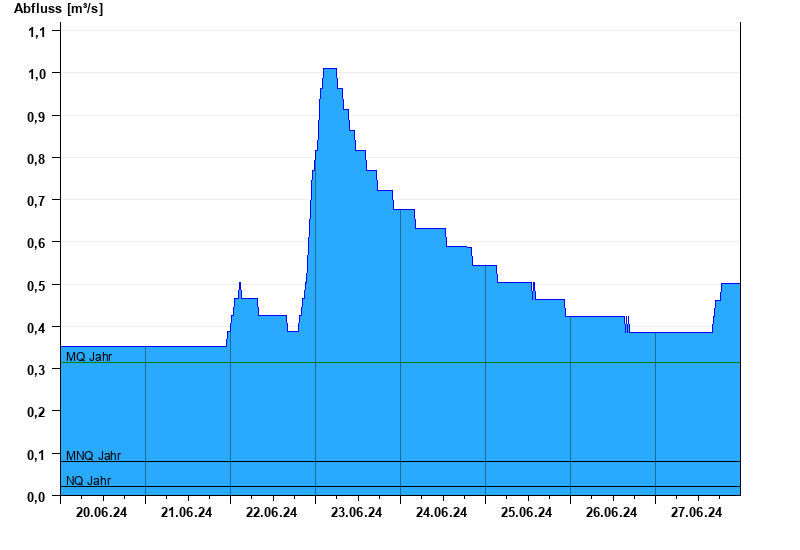- Mittlerer Niedrigwasserabfluss MNQ 0,08 m³/s