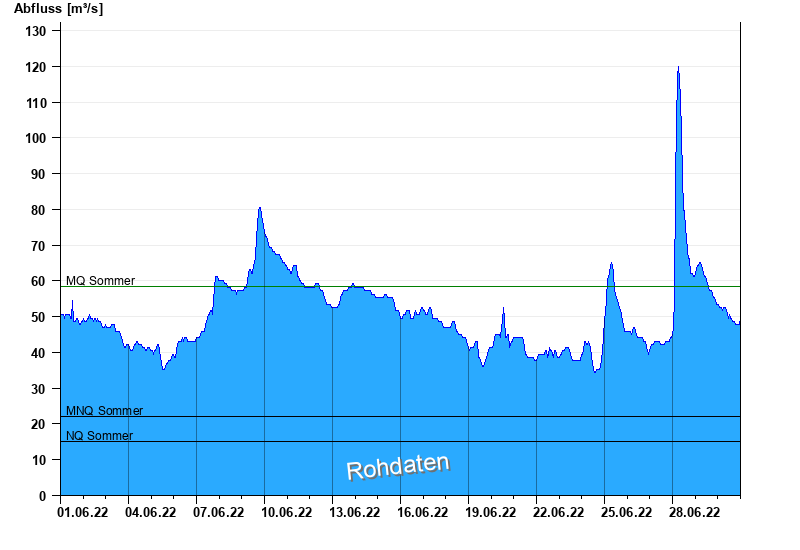 - Mittlerer Niedrigwasserabfluss MNQ 22,1 m³/s