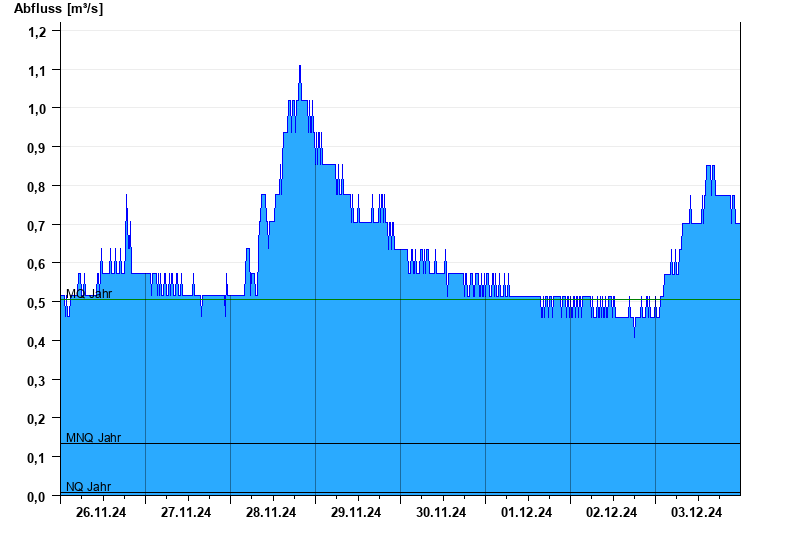 - Mittlerer Niedrigwasserabfluss MNQ 0,133 m³/s