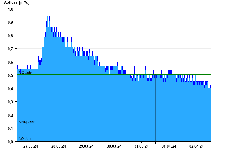 - Mittlerer Niedrigwasserabfluss MNQ 0,133 m³/s