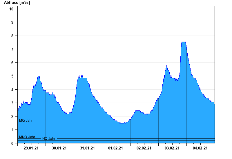 - Mittlerer Niedrigwasserabfluss MNQ 0,345 m³/s