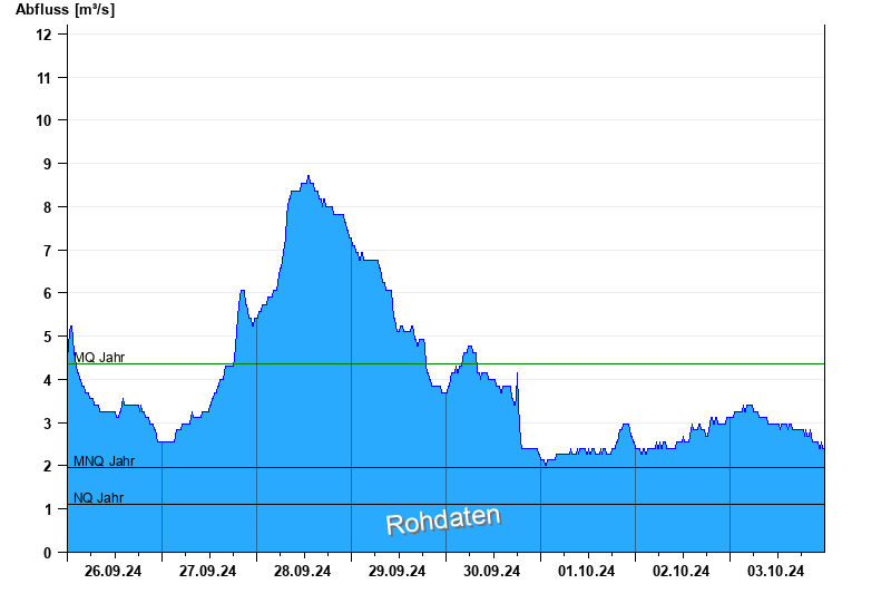 - Mittlerer Niedrigwasserabfluss MNQ 1,95 m³/s