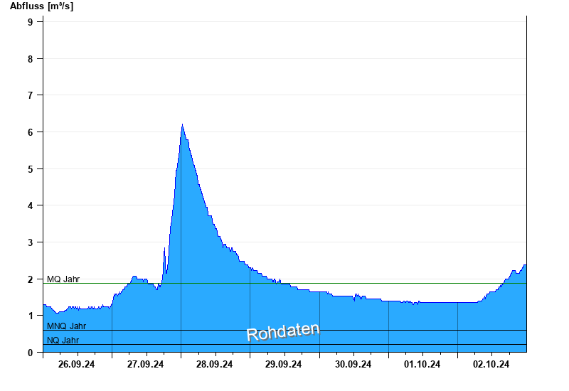 - Mittlerer Niedrigwasserabfluss MNQ 0,6 m³/s