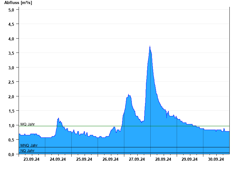 - Mittlerer Niedrigwasserabfluss MNQ 0,239 m³/s