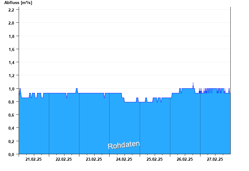 Abfluss durch starke Verkrautung behindert; Abflusswerte unsicher
