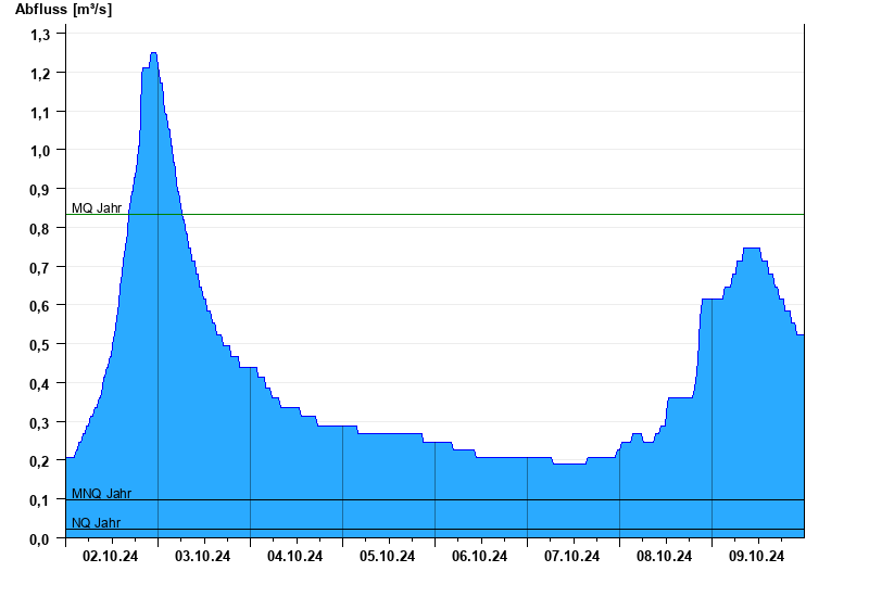- Mittlerer Niedrigwasserabfluss MNQ 0,099 m³/s