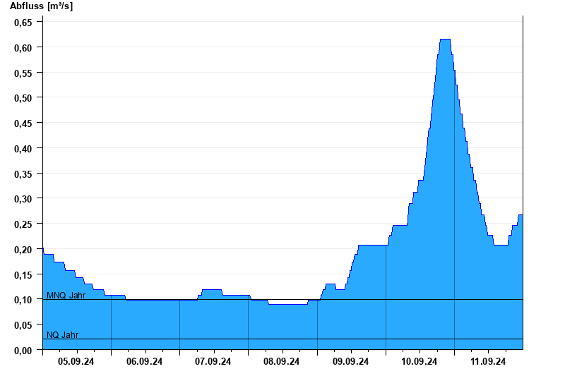 - Mittlerer Niedrigwasserabfluss MNQ 0,099 m³/s