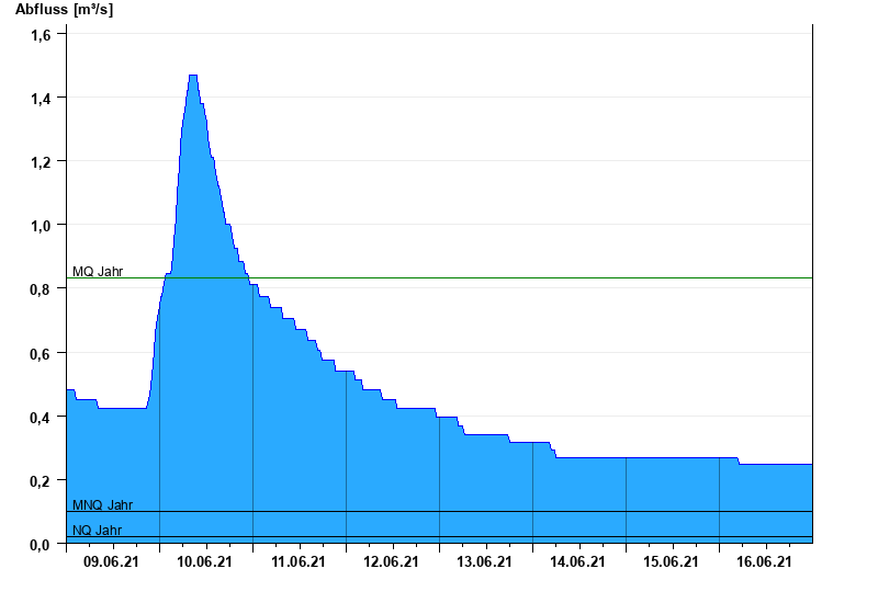 - Mittlerer Niedrigwasserabfluss MNQ 0,099 m³/s