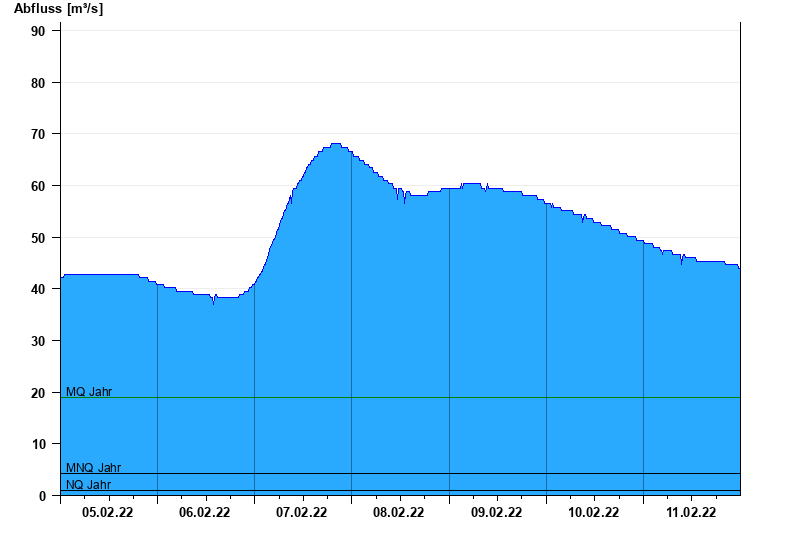 - Mittlerer Hochwasserabfluss MHQ 155 m³/s