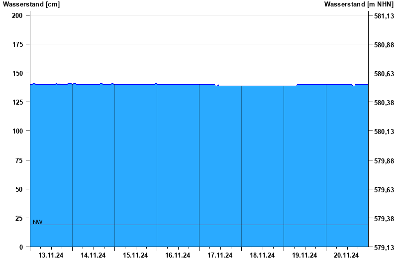 Der Pegel wird durch Baumaßnahmen unterhalb beeinflusst (Rückstau). Entsprechend sind die Abflusswerte nicht korrekt