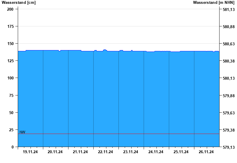 Der Pegel wird durch Baumaßnahmen unterhalb beeinflusst (Rückstau). Entsprechend sind die Abflusswerte nicht korrekt