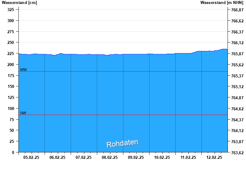 Störung wegen Stromversorgungsprobleme. Der Wasserstand wird durch starke Kiesumlagerungen beeinflusst. Der hier gezeigte Abfluss kann entsprechend stark vom tatsächlichen Abfluss abweichen.