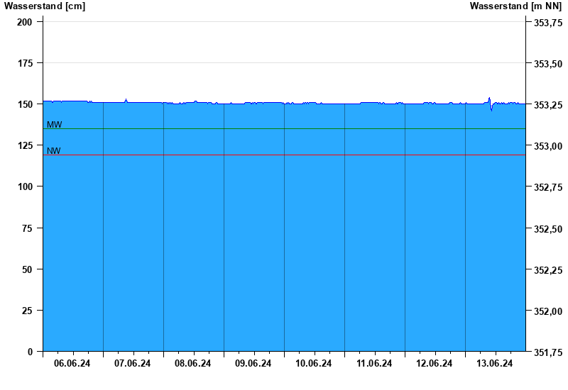 Abfluss durch starke Verkrautung behindert; Abflusswerte unsicher