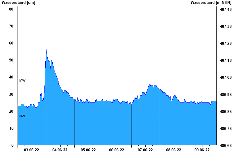 Abflussermittlung durch Veränderung im Pegelprofil gestört!