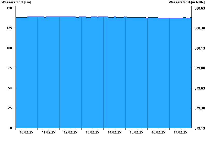 Der Pegel wird durch Baumaßnahmen unterhalb beeinflusst (Rückstau). Entsprechend sind die Abflusswerte nicht korrekt