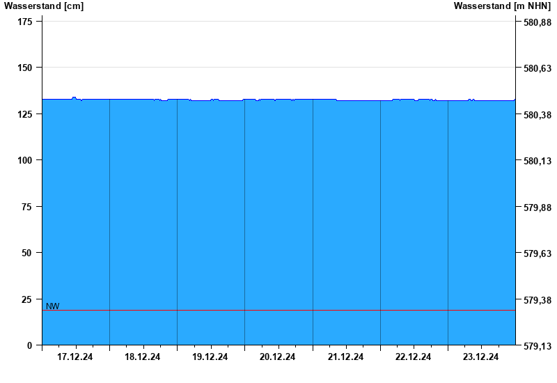 Der Pegel wird durch Baumaßnahmen unterhalb beeinflusst (Rückstau). Entsprechend sind die Abflusswerte nicht korrekt