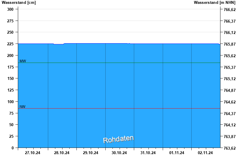 Störung wegen Stromversorgungsprobleme. Der Wasserstand wird durch starke Kiesumlagerungen beeinflusst. Der hier gezeigte Abfluss kann entsprechend stark vom tatsächlichen Abfluss abweichen.