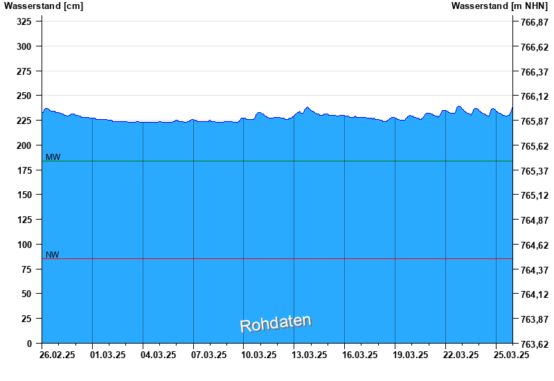 Störung wegen Stromversorgungsprobleme. Der Wasserstand wird durch starke Kiesumlagerungen beeinflusst. Der hier gezeigte Abfluss kann entsprechend stark vom tatsächlichen Abfluss abweichen.