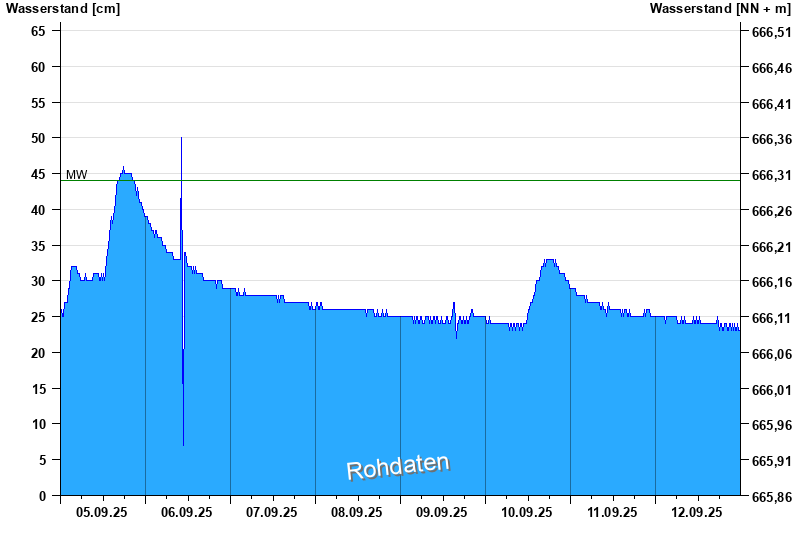 Messwerte beeinflusst durch Kraftwerkssteuerung und Kiesumlagerungen. Kiesanlandungen können bei Niedrigwasser Trockenlegung der Messinstrumente bewirken.