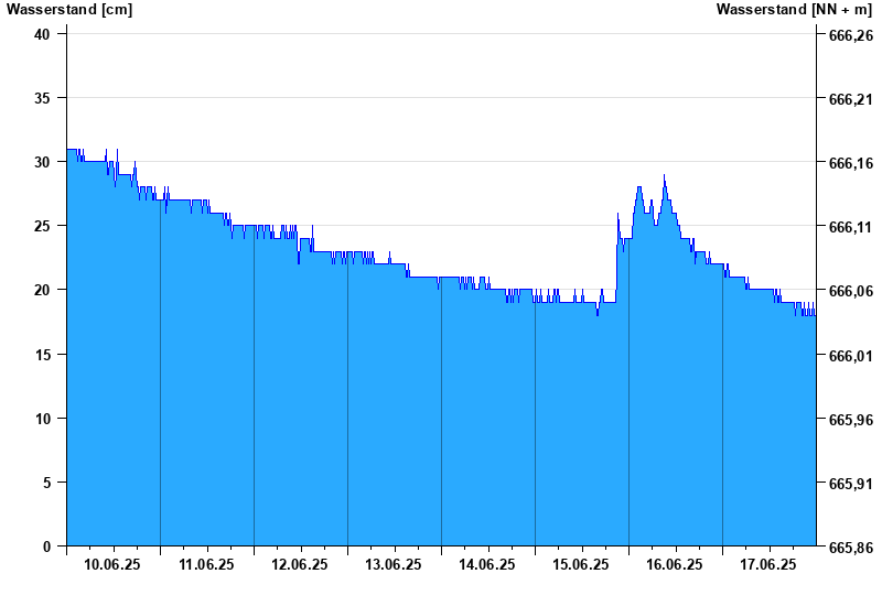 Messwerte beeinflusst durch Kraftwerkssteuerung und Kiesumlagerungen. Kiesanlandungen können bei Niedrigwasser Trockenlegung der Messinstrumente bewirken.