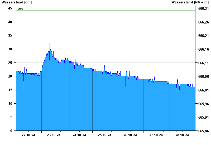 Messwerte beeinflusst durch Kraftwerkssteuerung und Kiesumlagerungen. Kiesanlandungen können bei Niedrigwasser Trockenlegung der Messinstrumente bewirken.