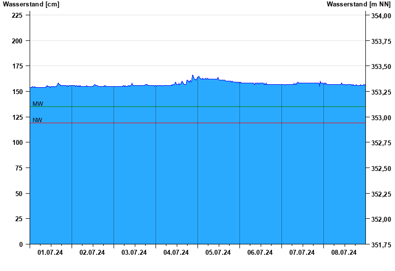 Abfluss durch starke Verkrautung behindert; Abflusswerte unsicher