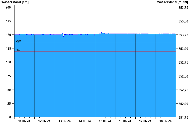 Abfluss durch starke Verkrautung behindert; Abflusswerte unsicher