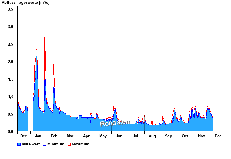 | Datum | Mittelwert [m³/s] | Maximum [m³/s] | Minimum [m³/s] |