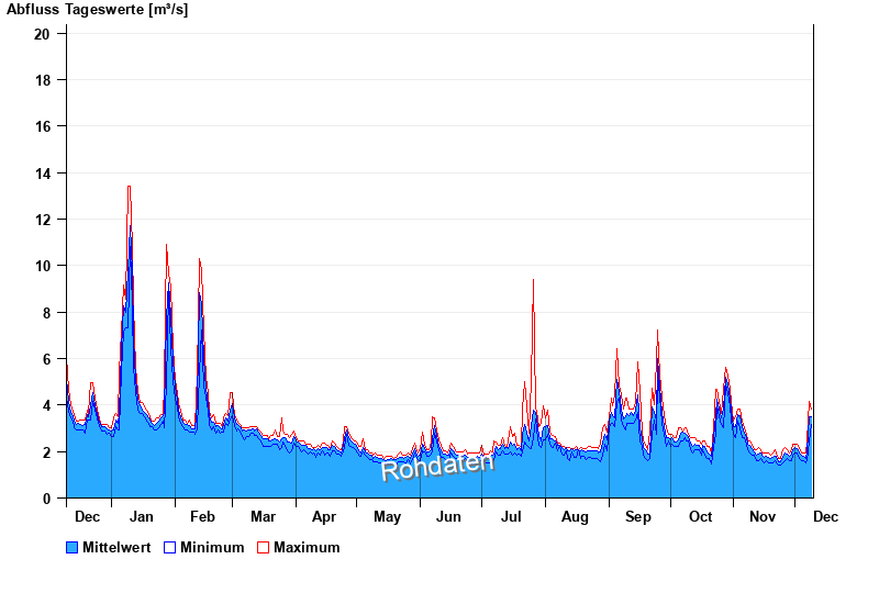 | Datum | Mittelwert [m³/s] | Maximum [m³/s] | Minimum [m³/s] |