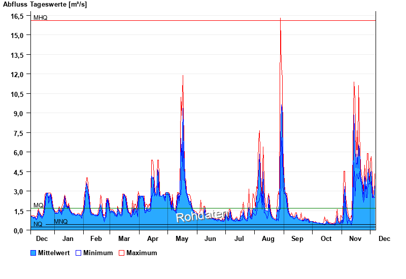 - Mittlerer Hochwasserabfluss MHQ 16,1 m³/s