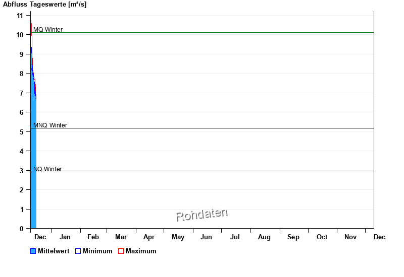 | Datum | Mittelwert [m³/s] | Maximum [m³/s] | Minimum [m³/s] |