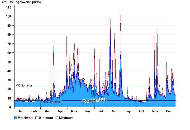 | Datum | Mittelwert [m³/s] | Maximum [m³/s] | Minimum [m³/s] |