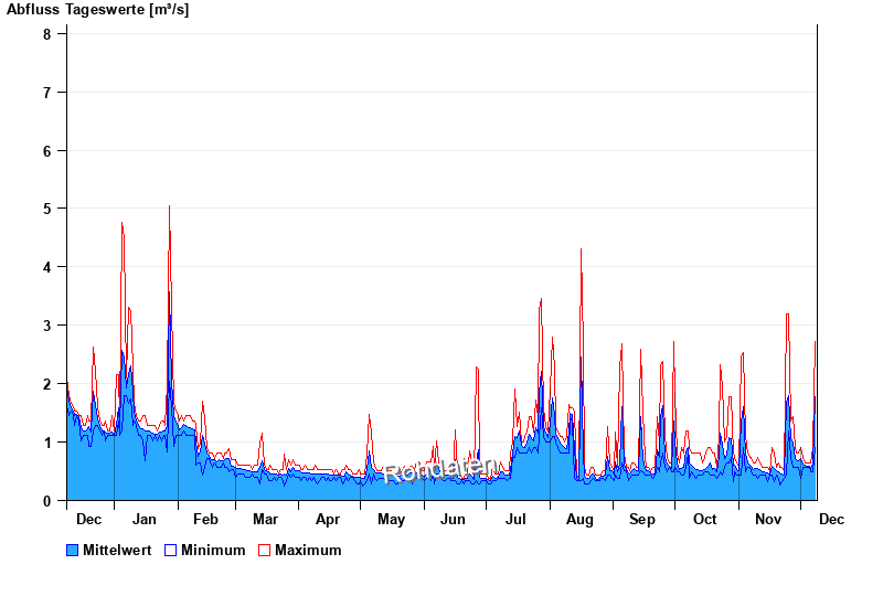 | Datum | Mittelwert [m³/s] | Maximum [m³/s] | Minimum [m³/s] |