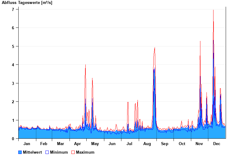 | Datum | Mittelwert [m³/s] | Maximum [m³/s] | Minimum [m³/s] |