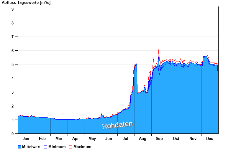 | Datum | Mittelwert [m³/s] | Maximum [m³/s] | Minimum [m³/s] |