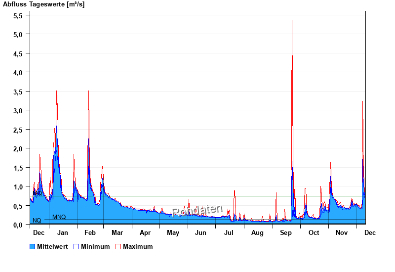 | Datum | Mittelwert [m³/s] | Maximum [m³/s] | Minimum [m³/s] |