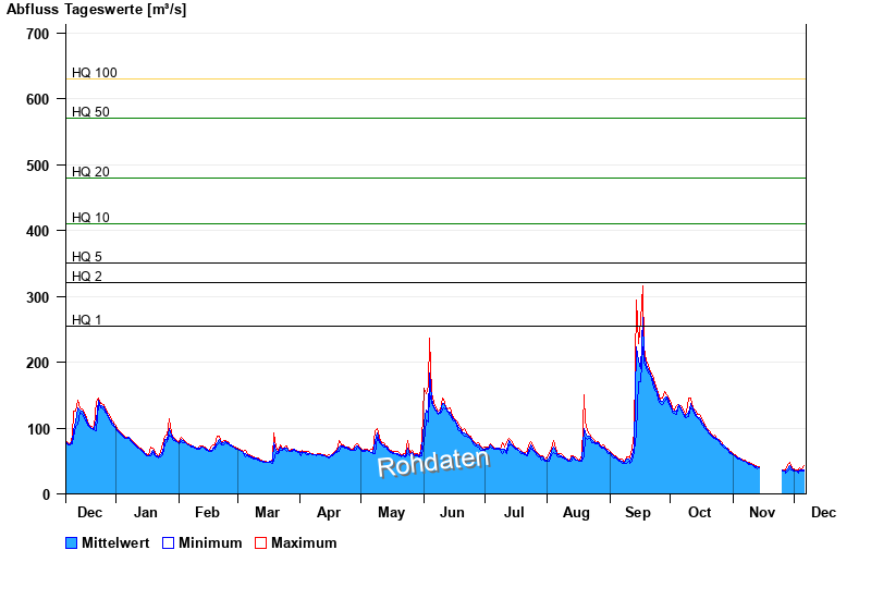 | Datum | Mittelwert [m³/s] | Maximum [m³/s] | Minimum [m³/s] |