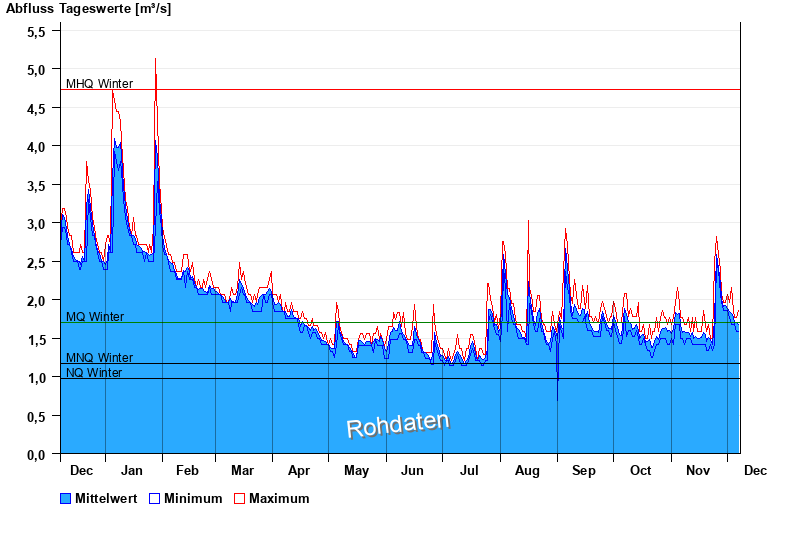 | Datum | Mittelwert [m³/s] | Maximum [m³/s] | Minimum [m³/s] |