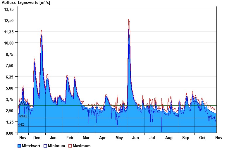 | Datum | Mittelwert [m³/s] | Maximum [m³/s] | Minimum [m³/s] |