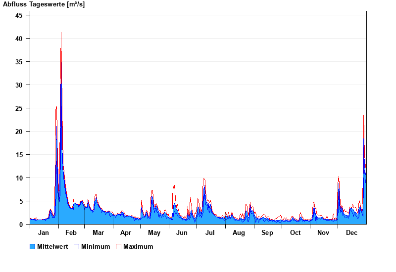 | Datum | Mittelwert [m³/s] | Maximum [m³/s] | Minimum [m³/s] |