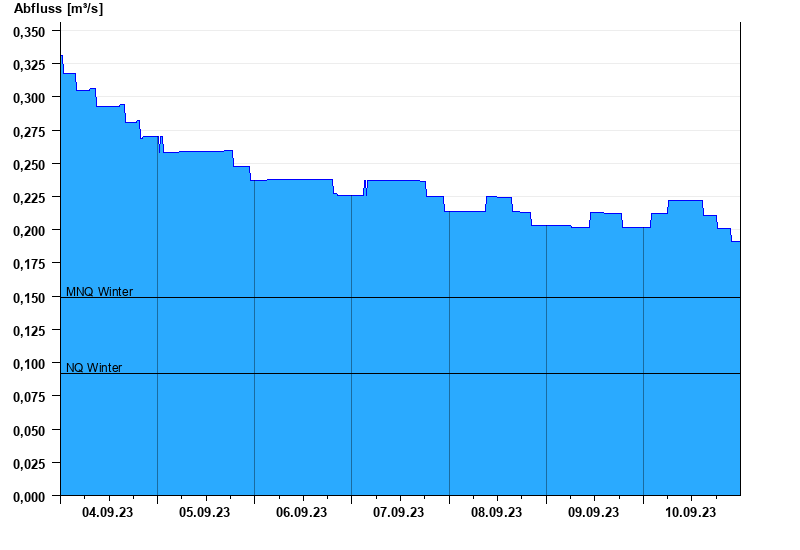 - Niedrigwasserabfluss NQ 0,092 m³/s