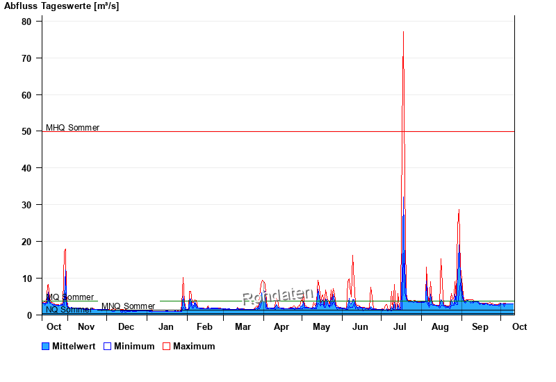 | Datum | Mittelwert [m³/s] | Maximum [m³/s] | Minimum [m³/s] |