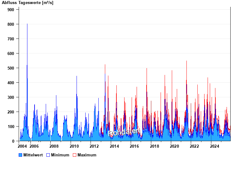 | Datum | Mittelwert [m³/s] | Maximum [m³/s] | Minimum [m³/s] |
