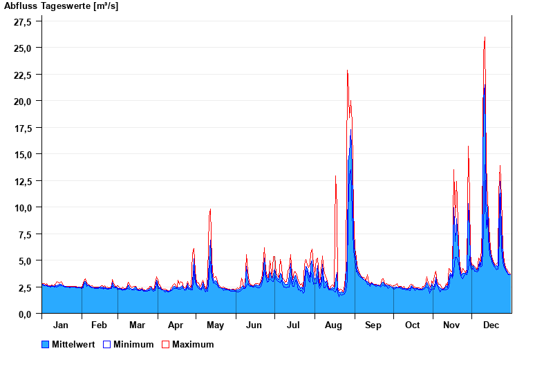 | Datum | Mittelwert [m³/s] | Maximum [m³/s] | Minimum [m³/s] |