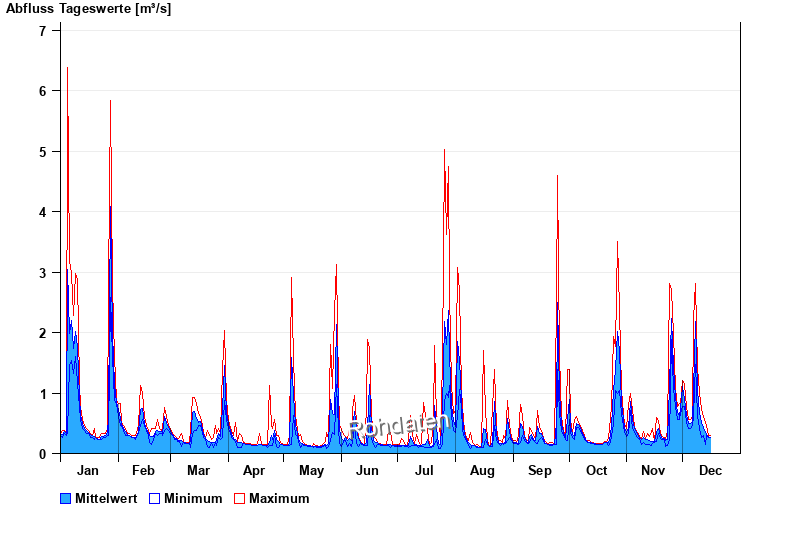 | Datum | Mittelwert [m³/s] | Maximum [m³/s] | Minimum [m³/s] |