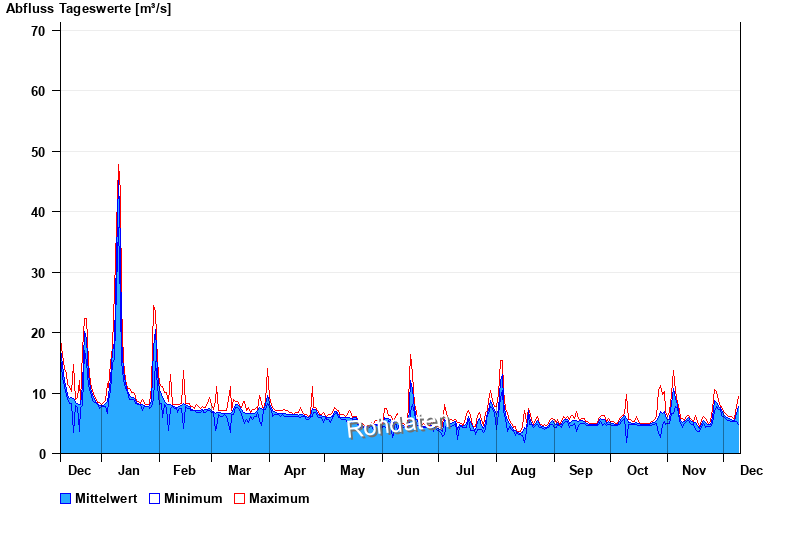 | Datum | Mittelwert [m³/s] | Maximum [m³/s] | Minimum [m³/s] |