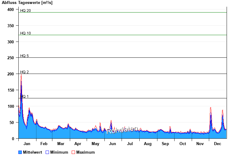 | Datum | Mittelwert [m³/s] | Maximum [m³/s] | Minimum [m³/s] |